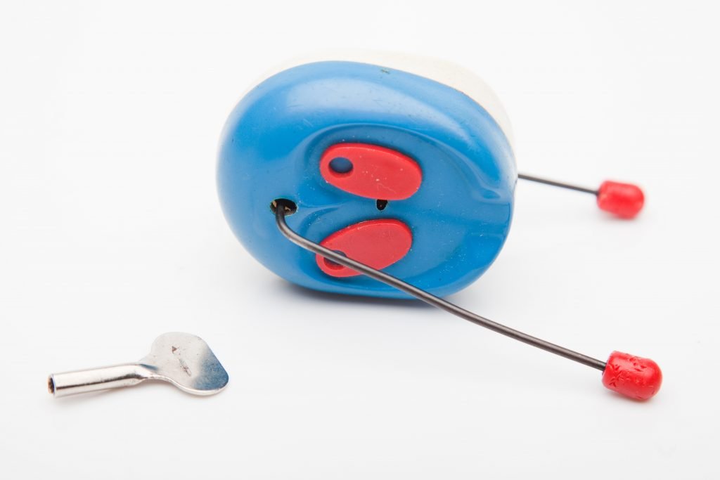 A clockwork toy. Her parents bought this toy more than 30 years ago. It is an old Soviet toy, which still works, you only need to set by turning the key.