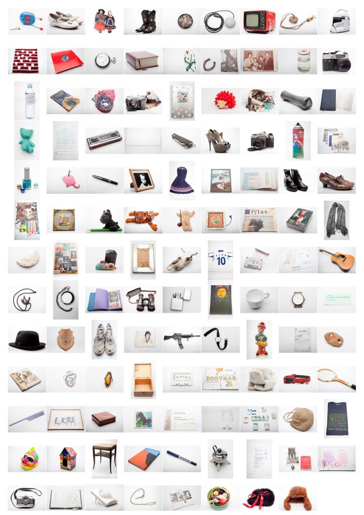 It varied from childhood toys, books, musical instruments to things found on the road while hitchhiking and just water. First three things (stories below) are followed by the picture of all of them and exhibition documentation.